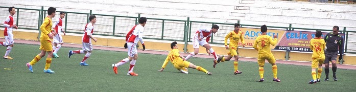 Ferdi ve Anıl’ın ikişer gol atarak ön plana çıktığı maçta sarı kırmızılılara farklı galibiyeti getiren diğer golleri Sercan, penaltıdan kaleci Alper, Efe, Kaan, Mercan ve Taci attı.